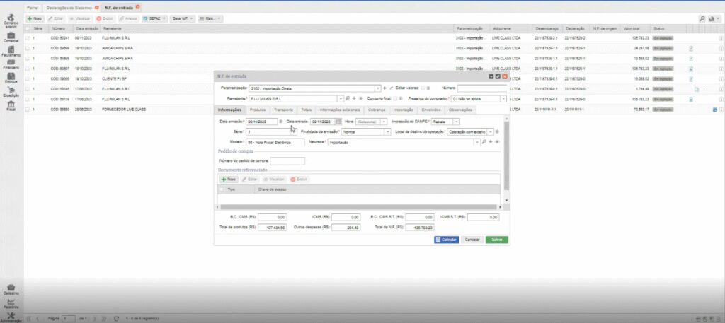 Por meio desse módulo é possível fazer a importação automática do XML da DI do Siscomex para a emissão da nota fiscal de entrada em poucos cliques.